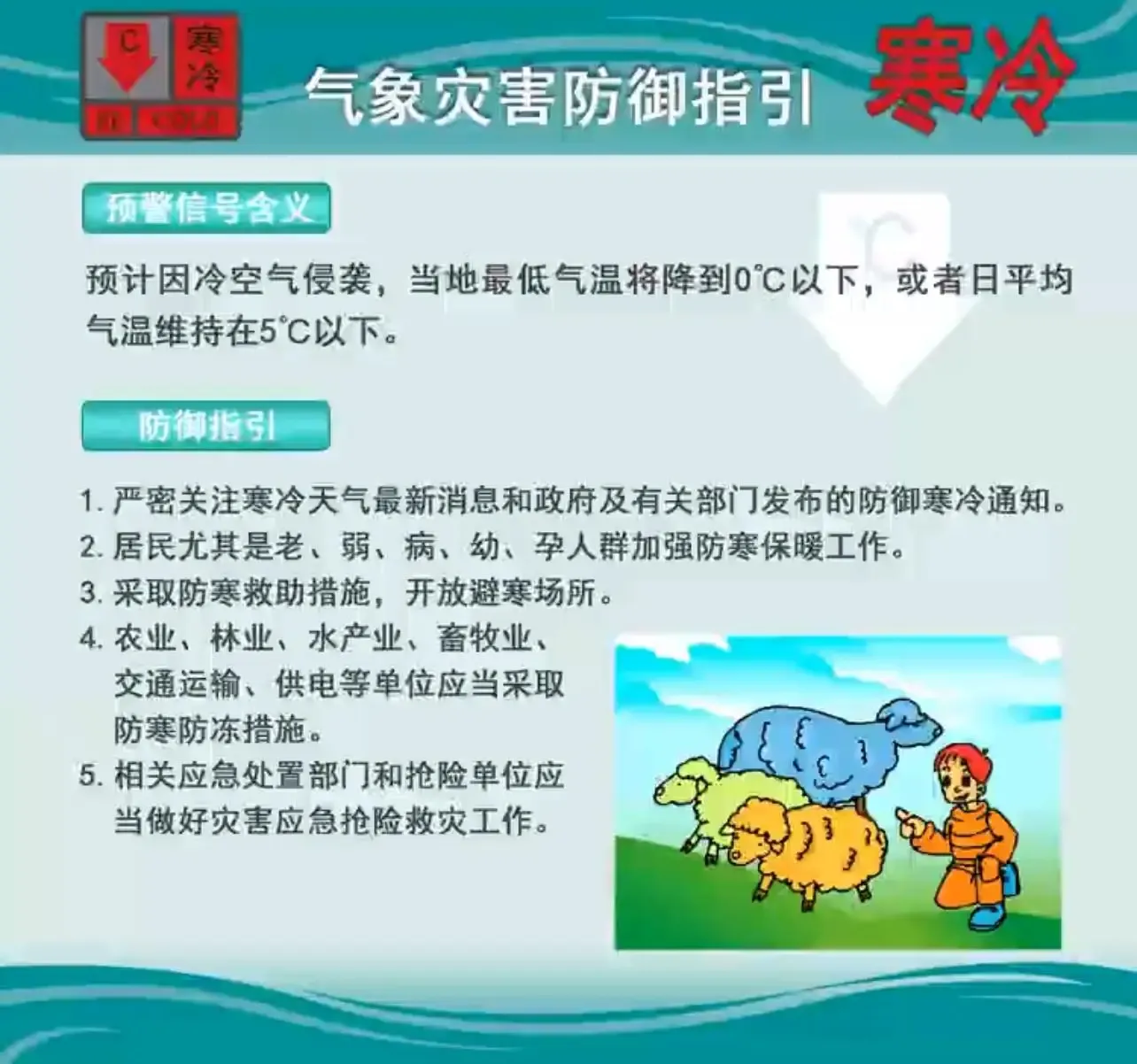 寒冷红色预警信号防御指引。广东省气象服务中心制图